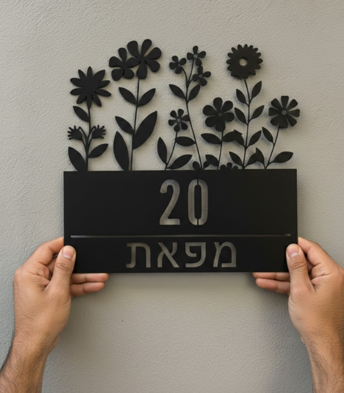 שלט כניסה לבית מעוצב.