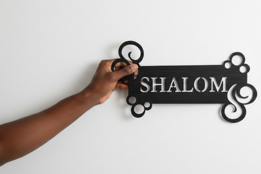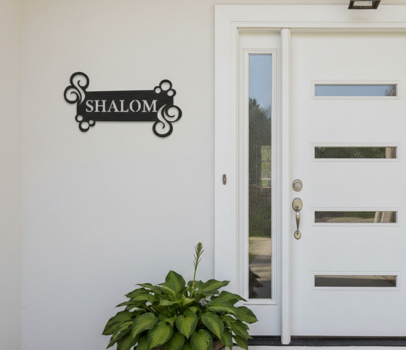 שלט מעוצב בכניסה לבית.