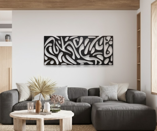 שלט ברזל בעיצוב אבסטרקטי, תוספת של אופי וסטייל עדין לבית עם שלט ברזל מעוצב שמשתלב בהרמוניה על כל קיר. השילוב המדויק בין חומר חזק לעיצוב זורם שיוצר מראה נקי ומתוחכם בחלל המגורים.